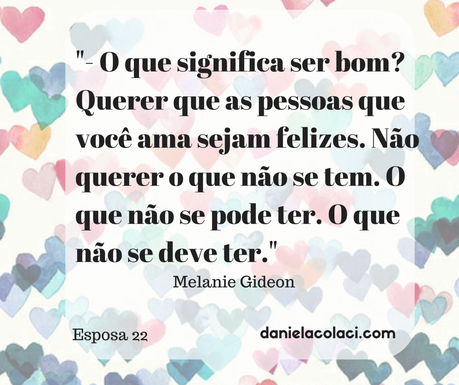 Essa frase eu tirei do “Esposa 22” que li esse mês! É um pedaço de uma das respostas de um questionário que Alice Buckle, personagem principal da história, responde ao longo das páginas do livro. Uma delícia de ler, em breve farei a resenha!