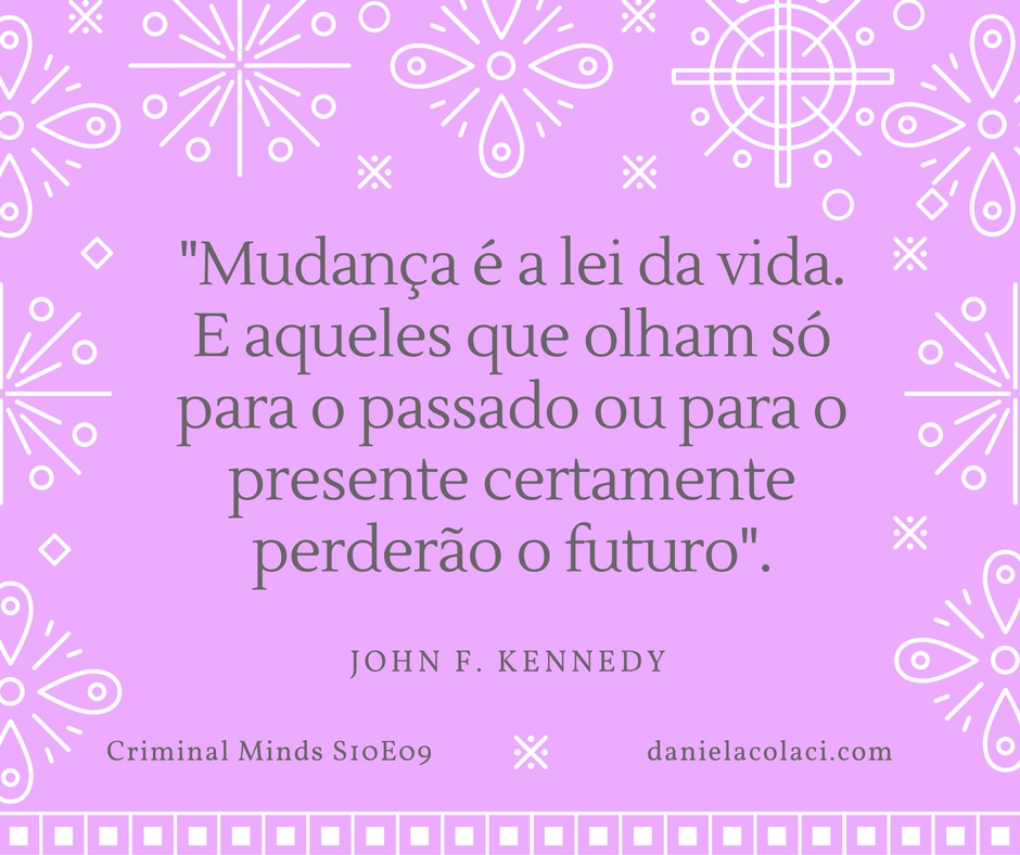 10ª Temporada – Episódio 9 (Into the Woods) Mudanças são necessárias para se adaptar. Aceite-as. Ninguém vive de passado pra sempre.